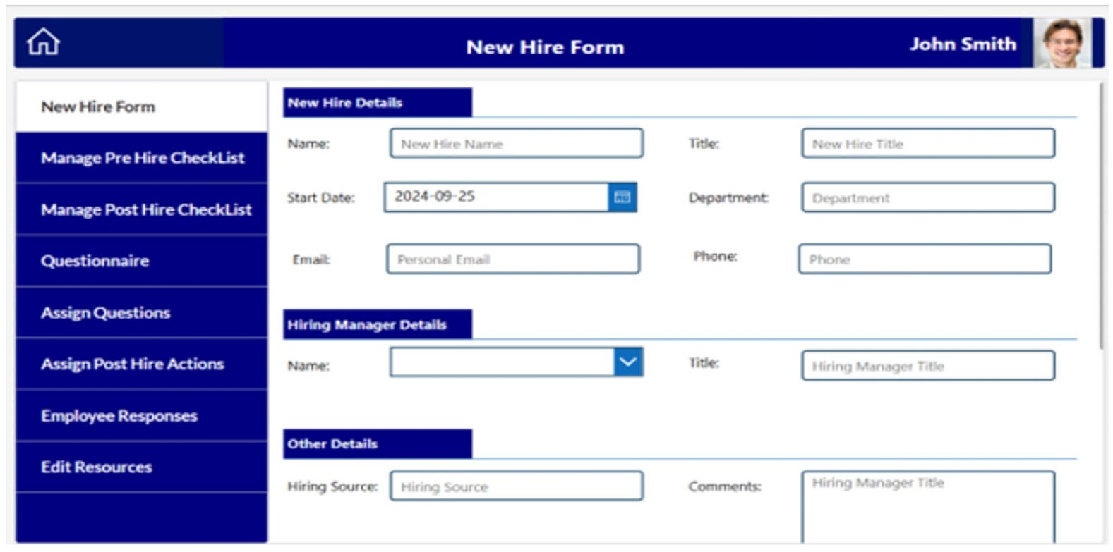 A centralized employee onboarding portal was implemented to standardize and automate the onboarding journey. Digital forms were introduced for collecting personal information and policy acknowledgements, while tasks were automatically assigned to HR, IT, and managers based on predefined workflows. A questionnaire module supported compliance requirements, and a central repository was created to store policies, guides, and onboarding documents. The portal ensured all stakeholders were aligned and onboarding activities progressed in a structured and transparent manner.